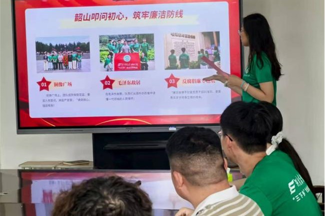 為深入追尋偉人足跡,傳承紅色精神,團隊還趕赴韶山紅色教育基地學習。在毛澤東故居的簡樸農舍里,望著偉人清苦的生活環境和匱乏的生活用品,在簡樸中讀懂了一代領袖的人民情懷;來到銅像廣場上,團隊莊重敬獻花籃、重溫入黨誓詞,以鏗鏘誓言回望入黨初心,凝聚奮進力量。同時他們通過參觀毛澤東生平展和反腐廉潔展,深刻認識到"打鐵必須自身硬"的時代要求,以身作則,在學思踐行中傳承紅色基因。