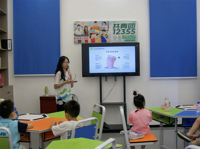 此次課程以“小手牽大手,分類齊步走”為主題。課堂上,宣講人先播放動畫短片,直觀展示垃圾混放的危害與分類后的資源再生過程,瞬間抓住孩子們的注意力。隨后,宣講人用簡單易懂的語言講解可回收垃圾、有害垃圾、廚余垃圾和其他垃圾的分類標準,結合常見物品舉例,讓孩子們輕松理解。