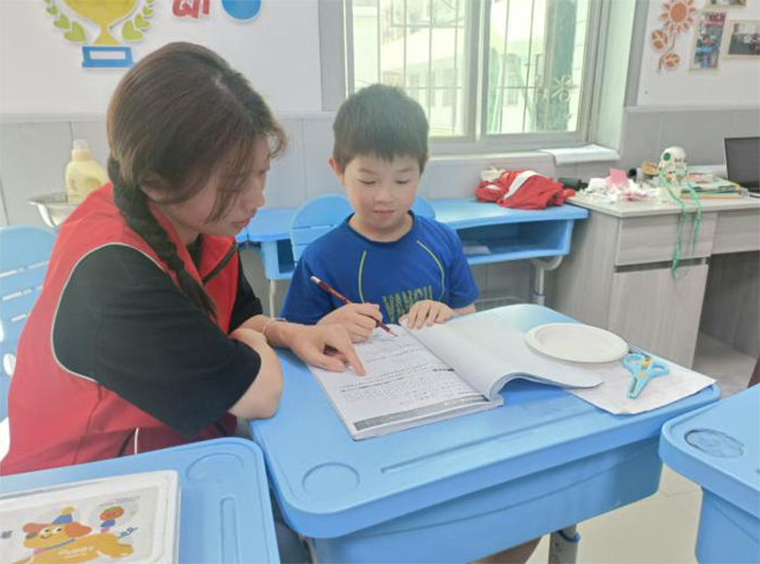 圖為實踐團成員在為孩子輔導作業。樊玲玲 供圖