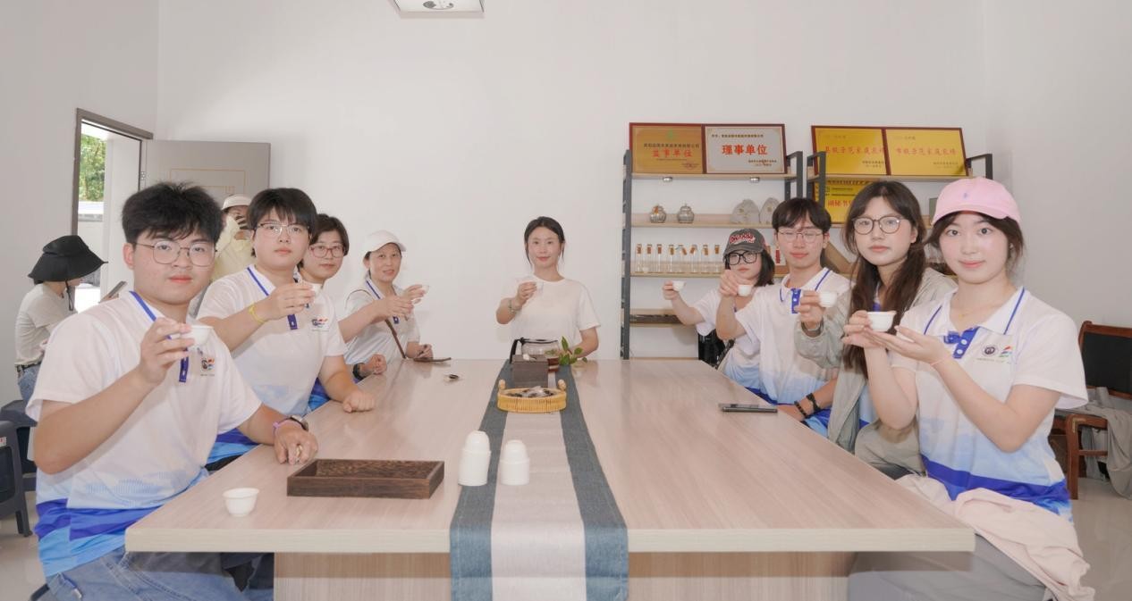 圖為基地負責人和實踐團成員品嘗黃精茶 張振宇 供圖