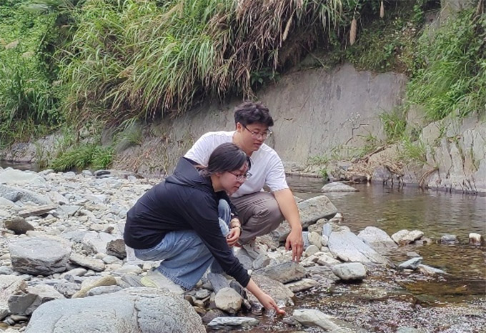 圖7:“皖”頃碧綠實(shí)踐團(tuán)隊(duì)成員在大同村溪流邊觀察水質(zhì)陳芮敏供圖
