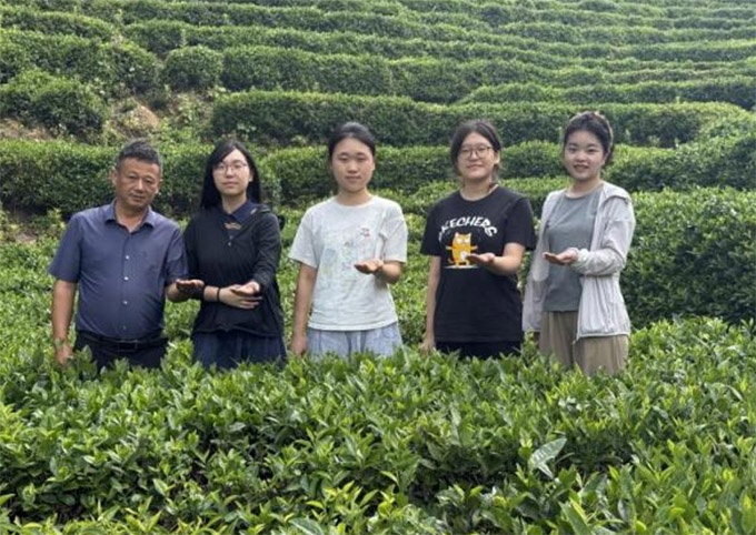 圖3:“皖”頃碧綠團(tuán)隊(duì)與茶園負(fù)責(zé)人合影張梓昱供圖