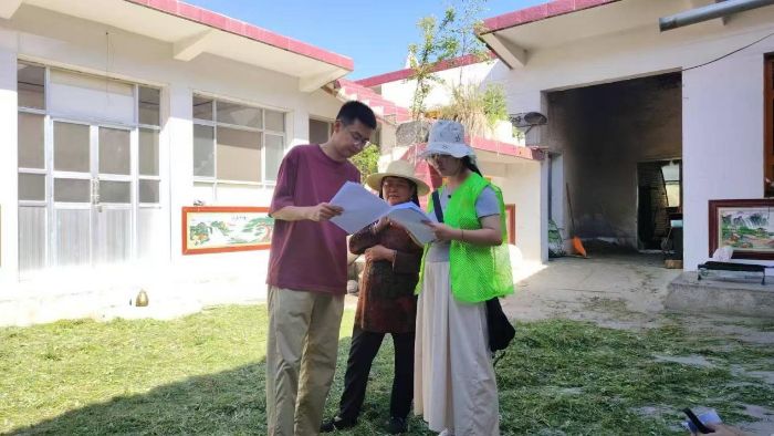 結束村委會參訪,調研隊隨副支書深入村民家中開展養殖現狀問卷調研。在問卷調研的過程中,面對村民識字率低、專業術語理解難等挑戰,隊員們當即調整策略:由隊員口述或副支書方言轉譯,進而完成問卷。最終,隊員們收集到了20余份問卷,初步了解了村民養殖現狀,為隊員們之后的研究提供一手資料。