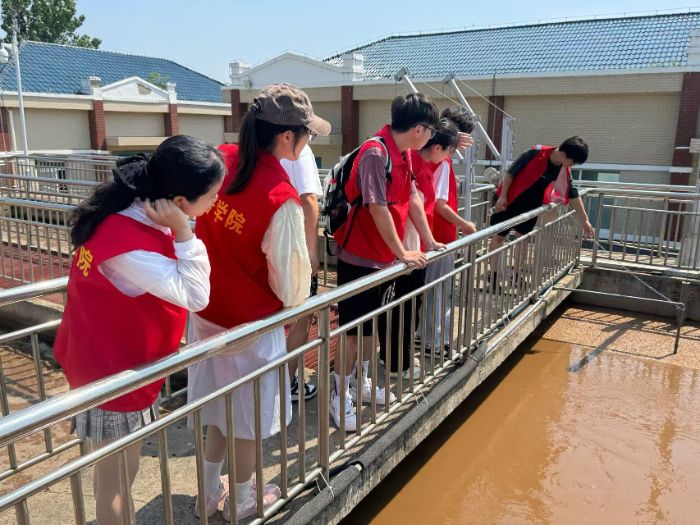 “大家現(xiàn)在看到的提升泵房,就像污水處理系統(tǒng)的‘心臟’,每天24小時(shí)不停運(yùn)轉(zhuǎn),將全鎮(zhèn)的生活污水‘泵’入處理流程。”在污水處理廠工程師的帶領(lǐng)下,實(shí)踐團(tuán)成員依次探訪了消毒池、提升泵房、纖維濾布濾池、流量槽、出水在線監(jiān)測房和二沉池,親眼見證了污水從渾濁到清澈的“蛻變”。