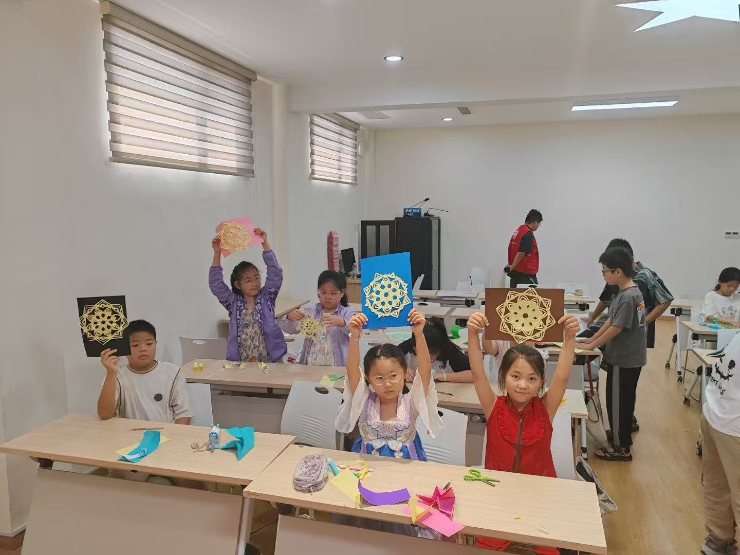 傳統民俗課堂同樣熱鬧。孩子們跟著志愿者學剪“福”字窗花,在折紙、剪裁中感受非遺魅力。“原來老手藝里藏著這么多智慧!”一位小朋友舉著自己的作品,興奮地向鏡頭展示。
