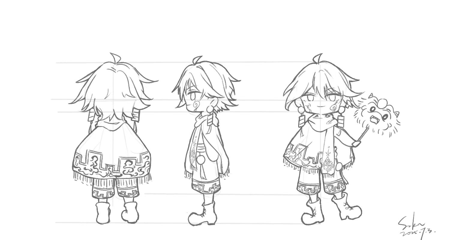 圖為設計組成員繪制的IP形象線稿。張紹愉供圖