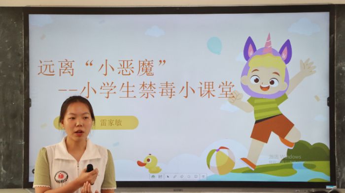 圖為老師使用形象的方式講解毒品危害。“籽籽同行”突擊隊攝