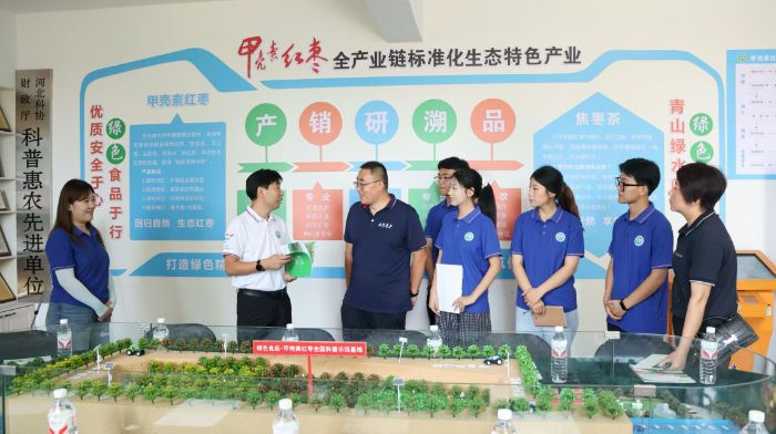 7月23日,河北農業大學經濟管理學院赴行唐社會實踐小分隊師生與全國勞動模范、行唐縣縣幾丁質紅棗專業合作社理事長盧彥鴿開展以“聚焦勞模學實干,青春擔當助振興”主題的深度交流訪談活動,學院黨委副書記、副院長高強,團委書記袁慧軍、輔導員李文暢,以及社會實踐隊員參與本次活動。