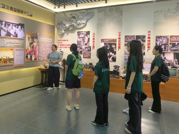 隊員們沿著景觀步道參觀了健身區、文化長廊、兒童樂園和生態濕地。村委工作人員介紹,公園由昔日的閑置地塊改造而成,既滿足了村民休閑娛樂需求,又成為展示村史文化的窗口。在文化長廊,團隊成員通過老照片、實物展品了解了東毛家莊村的發展變遷;在生態濕地,觀察到通過水生植物凈化水質的治理成果,直觀感受到鄉村在人居環境整治、公共服務提升方面的顯著變化,深刻體會到“共建共治共享”的鄉村治理理念。
