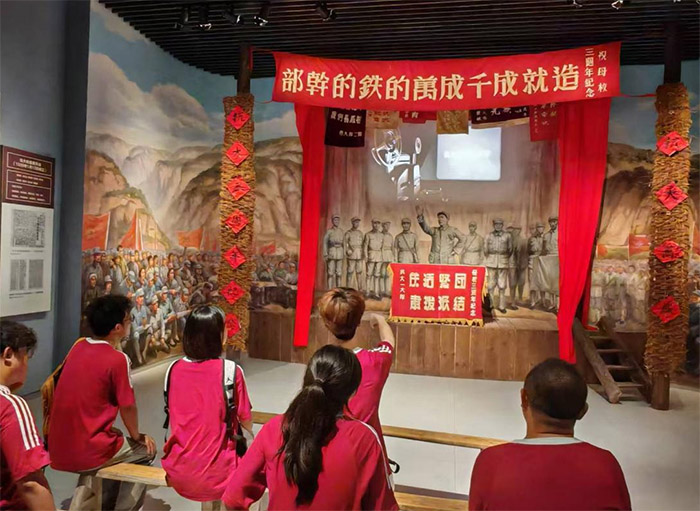 “原來‘實事求是’是在這樣具體的實踐中總結的。”邢夢瑜指著墻上的標語說。成員們圍在老照片前,對照史料熱議紅軍長征、敵后斗爭、大生產運動等歷史,李宇凡同學坦言:“課本里的文字變成了眼前的場景,才懂先輩在艱苦中探索的不易。”