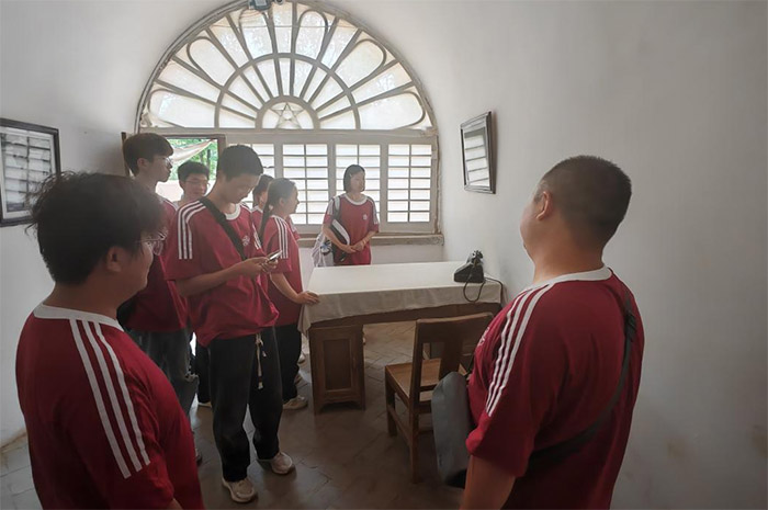 在岡野進舊居,木質書桌、藤椅、搪瓷缸與硯臺陳列有序。侯老師介紹:“岡野進是日本共產黨領導人,為反法西斯斗爭作貢獻。”成玉琪說:“這些日常用品見證了跨國反法西斯情誼,理想的力量真動人。”