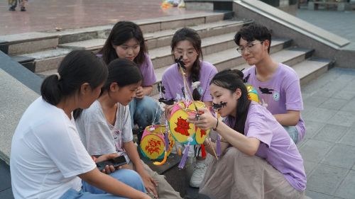 實踐團(tuán)成員向小朋友們播撒宮燈文化火種 劉靜雯攝