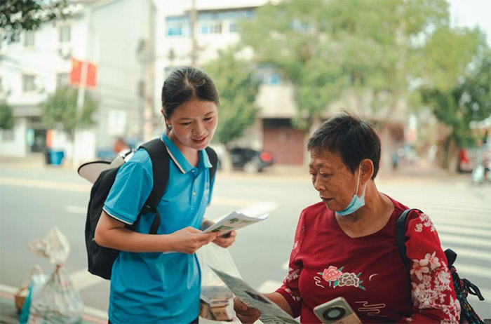 團(tuán)隊(duì)成員在進(jìn)行街頭訪談;段晨磊供圖