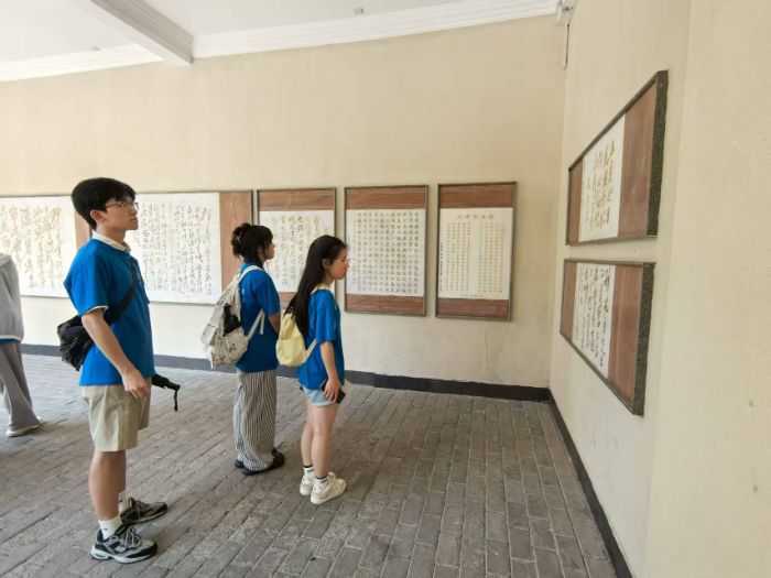 (圖為實踐隊員參觀毛澤東詩詞對聯書法藝術碑廊。通訊員肖伯健攝)
