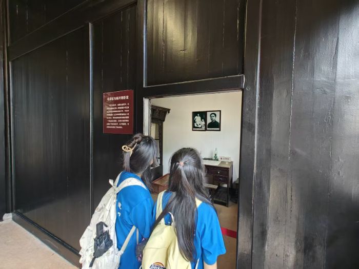 當日下午,實踐隊來到中共湘區委員會舊址暨毛澤東楊開慧故居進行參觀。1921年,毛澤東與何叔衡等人為聚天下英才而謀事,建立了中國共產黨最早的省級支部——中共湖南支部,清水塘22號成為了中共湖南支部秘密辦公地和毛澤東、楊開慧的居所,其見證著中國社會的偉大變革。通過踏足這座宅院,實踐隊員見證了毛澤東與楊開慧這對革命伉儷的忠貞愛情和崇高的革命理想。