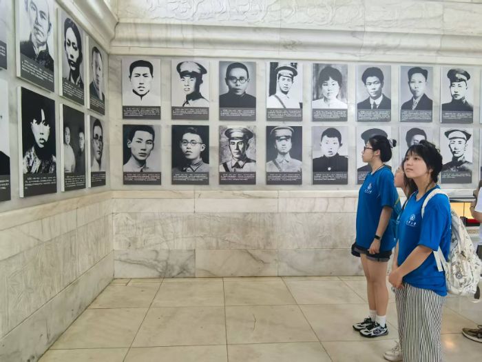 走進湖南烈士公園,實踐隊以腳步丈量革命歲月,用心靈感悟先烈忠魂。步入人民英雄紀念陳列館和瀟湘忠魂專題陳列館,館內陳列的手書題詞、烈士文抄、歷史圖片以及蔡和森、夏明翰等90多位英雄先烈們的歷史照片和遺物,生動地再現(xiàn)了當年瀟湘人民們浴血奮戰(zhàn)、不畏犧牲的英勇事跡。