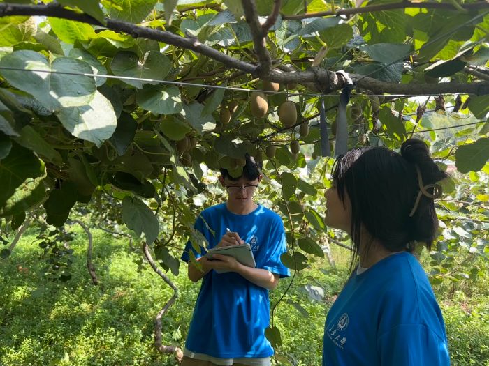 隨后,實踐隊深入種植區(qū)開展產業(yè)調研,觀察并記錄了當前階段獼猴桃的生長狀況。通過對比所記錄的各項指標,隊員們不僅直觀地了解到不同果品的精細化管理差異,更深刻體會到基地工作人員應對市場、順應自然的智慧與辛勞。大家表示,此行不僅是“看果”,更是向扎根土地、向上生長的勞動者學習。