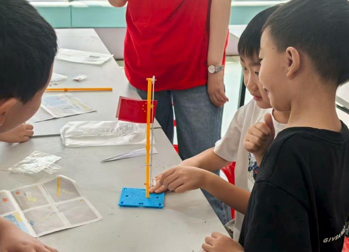 “國旗上的五顆五角星,象征著共產黨領導下的革命人民大團結。”課堂伊始,志愿者結合圖片講解國旗含義,并分發(fā)手工國旗模型材料,指導孩子們動手組裝。“老師,旗桿怎么固定才穩(wěn)?”志愿者耐心回應,手把手協(xié)助。當鮮艷的小國旗在桌上樹立,孩子們圍攏觀察,一位小朋友認真說道:“這代表我們國家,一點都不能馬虎!”