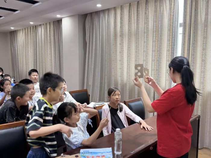 科技探秘與心靈成長 雙軌并行促發(fā)展 在桃北村公益暑托班,“神奇的光學魔法 —— 探秘 VR 技術” 主題活動點燃了孩子們的好奇心。“大家玩過 VR 游戲嗎?” 志愿者的提問引發(fā)熱烈回應,一名小學生舉手搶答:“就是戴個眼鏡、拿手柄玩的!”隨后,志愿者播放 VR 技術應用視頻:醫(yī)療手術模擬、航天員太空訓練、博物館沉浸式游覽……“原來 VR 不只是玩游戲,還能做這么多厲害的事!” 孩子們的驚嘆聲此起彼伏。