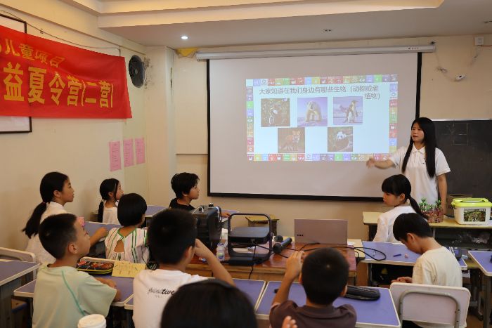7月10日,《自然密碼與生物多樣性》課程的盲盒互動(dòng)環(huán)節(jié)點(diǎn)燃了孩子們的熱情。當(dāng)孩子們的小手觸摸到生物模型時(shí),雀躍的歡呼與驚嘆聲此起彼伏,那份對(duì)自然生命的純粹熱愛(ài)直擊人心。在帶領(lǐng)孩子們認(rèn)識(shí)生物多樣性的同時(shí),孩子們也在用童真教會(huì)志愿者們更好理解“教學(xué)相長(zhǎng)”的含義。