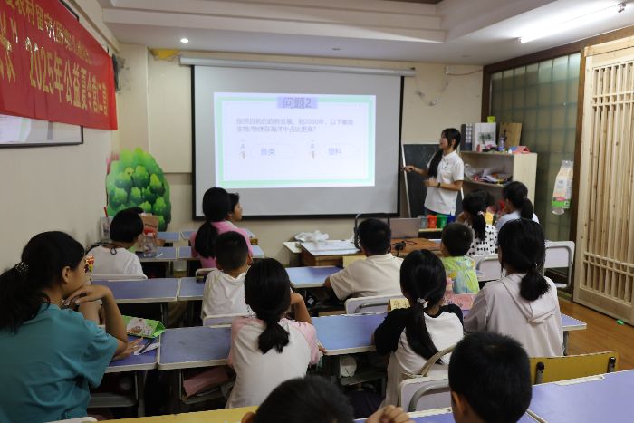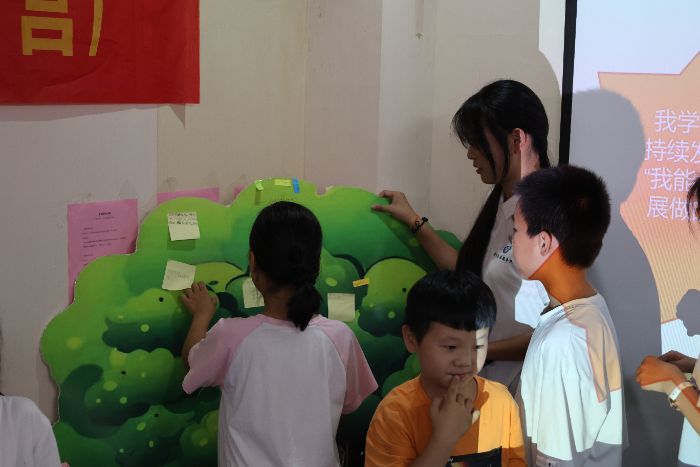 7月8日,《可持續(xù)發(fā)展目標(biāo)通識(shí)課》以趣味垃圾分類(lèi)小游戲拉開(kāi)序幕。孩子們踴躍思考,一個(gè)個(gè)頗具創(chuàng)意的“鄉(xiāng)村分類(lèi)金點(diǎn)子”接連涌現(xiàn)——從“秸稈堆肥小妙招”到“舊物改造巧利用”。這充分展現(xiàn)出“可持續(xù)發(fā)展不分年齡,每個(gè)人都能貢獻(xiàn)智慧”的活力。而后,孩子們紛紛將本節(jié)課的收獲寫(xiě)下來(lái)貼到了可持續(xù)發(fā)展的大樹(shù)之上,并表示會(huì)秉持可持續(xù)發(fā)展理念,以實(shí)際行動(dòng)踐行環(huán)境保護(hù)。