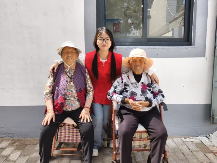 圖為團隊成員彥云與社區老人合影留念。張子航通訊員攝
