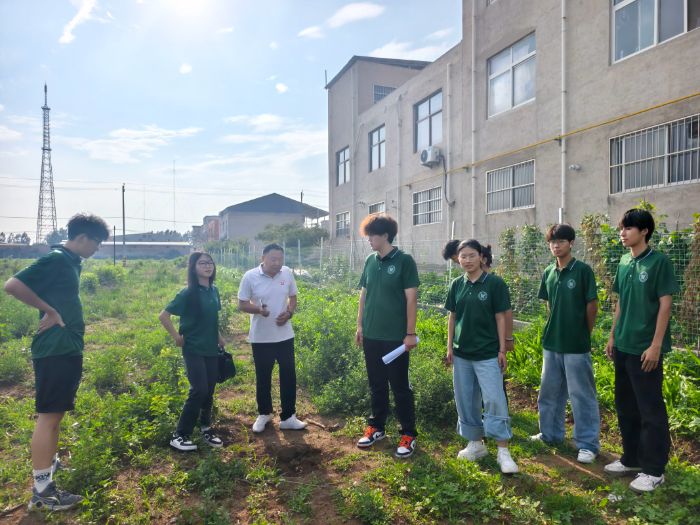 實踐首日,觀察團首站便訪問了李七里村特色農業種植基地。腳下的田壟整齊劃一,翠綠的蔬菜在田地里舒展著枝葉,一派生機勃勃的景象。村支書李雪林站在田埂上向志愿者們介紹:“以前是零散地塊,灌溉靠天,蔬菜品種單一,收成僅夠自足,遇到旱澇年頭顆粒無收,不少人外出打工。這幾年整合土地、修渠引水,請專家指導引種優質品種,如今蔬菜產銷兩旺,年增收幾十萬,好幾個外出務工的都回來了。”聽著介紹,同學們深受觸動,紛紛挽袖穿鞋下田勞作除草,汗水浸濕衣衫,大家臉上卻滿是興奮。