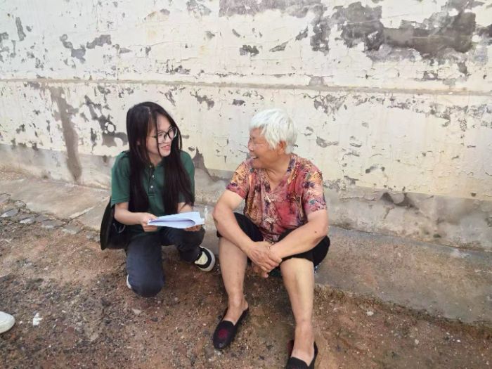 圖為團隊成員在向村民介紹調查問卷。張子航通訊員攝