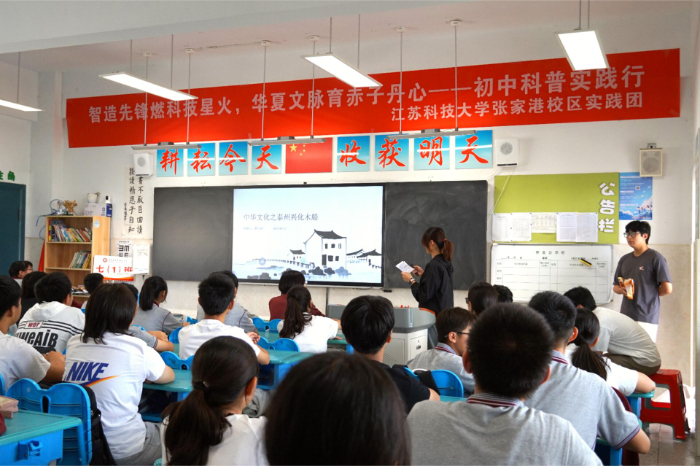 為深入貫徹“三下鄉”社會實踐精神,提升思想政治教育育人效果,江蘇科技大學張家港校區實踐團于2025年6月27日赴泰州市鳳凰初級中學開展暑期社會實踐活動。活動聚焦“愛國主義教育”“中華文化傳承”與“機器人專業知識科普”三大板塊,通過講解PPT、互動等形式,為初一學生播撒科學火種,厚植家國情懷。