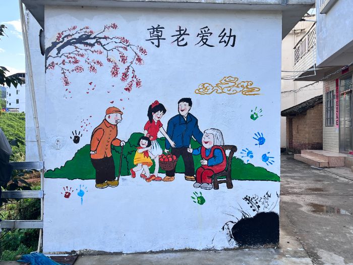 畫筆落下,南瑤村的墻面已成為文明傳承的鮮活載體。廣工“靚鄉(xiāng)突擊隊”以400平方米墻繪串聯起農耕記憶、現代動能與紅色傳承,讓傳統與現代在磚石上對話。去年村落生活場景與今年發(fā)展主題墻繪互文,共同構成完整的鄉(xiāng)土文明檔案。隊員與村民的攜手創(chuàng)作,讓藝術扎根大地,讓每一筆色彩都承載著在地情感與文化認同。這場青春助力的墻繪實踐,終以藝術之力為鄉(xiāng)村文明注入新活力,為鄉(xiāng)村振興留下溫暖注腳。