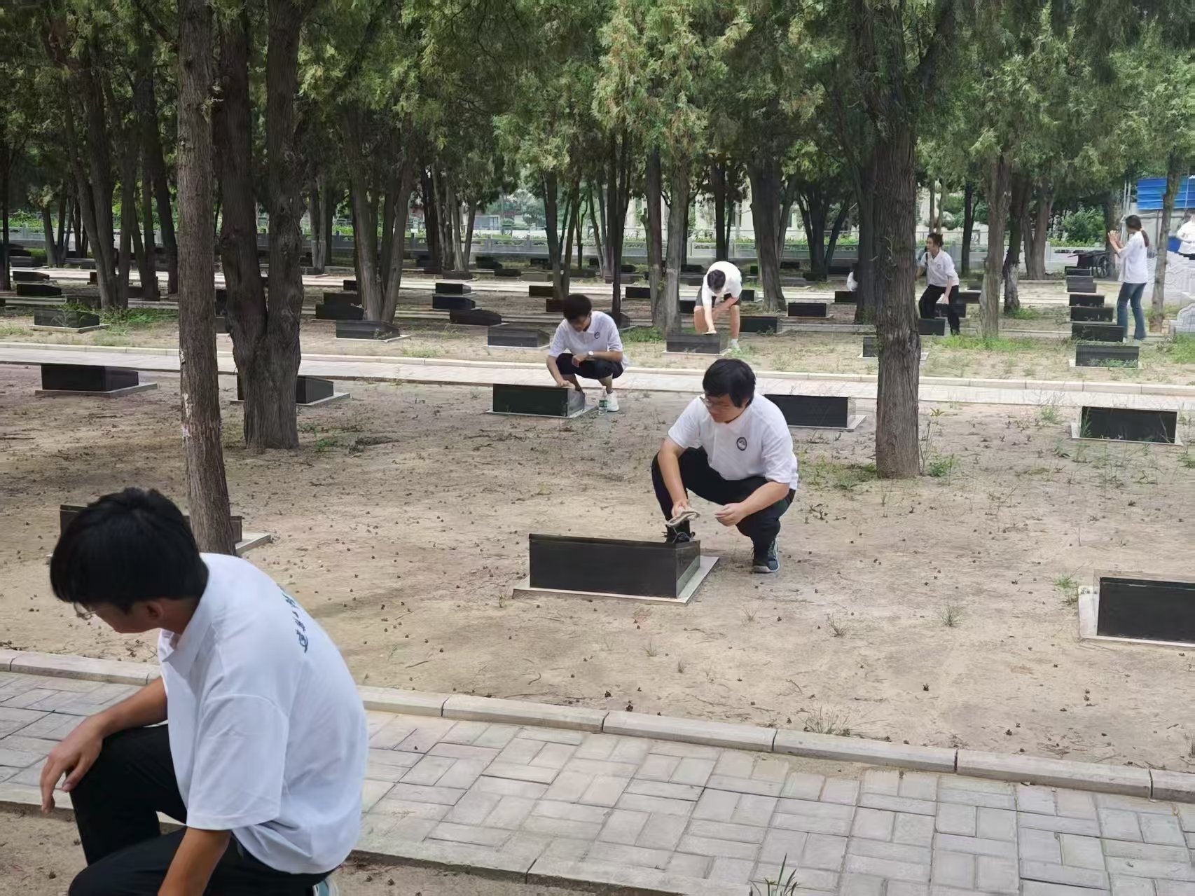 圖為隊員們為烈士們擦拭墓碑。馬艷萍 攝