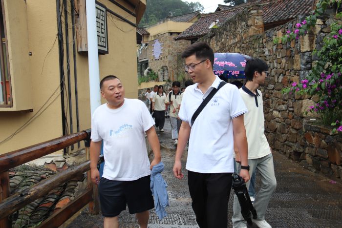 帶隊老師與駐村書記交談