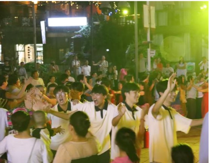 每周末晚在龍井村舉行的篝火晚會,不僅是展示布依族非遺文化獨特魅力的窗口,更是各民族交往交流交融、共筑中華民族共有精神家園的生動實踐。實踐隊積極協助村委會舉辦這場晚會,助力展現龍井村民族大家庭的團結進步。晚會高潮,布依銅鼓聲震云霄。身著隊服的實踐隊員們熱情融入盛裝的布依族同胞,踏著共同的節拍共舞。這場篝火晚會,已超越村民歡聚的意義,成為展演共享中華優秀傳統文化、促進民族團結進步、吸引八方來客體驗中華民族共同體溫度的重要平臺。在晚會表演期間,實踐隊充分發揮新媒體優勢進行現場直播,獲得超2萬次點贊。通過精心策劃的鏡頭,將布依古歌的悠揚、銅鼓舞的震撼、篝火轉場舞的熱烈以及現場觀眾的熱情實時傳遞,為民族地區文旅融合與鄉村振興注入了強勁的“云端”活力,有力服務了鑄牢中華民族共同體意識工作。