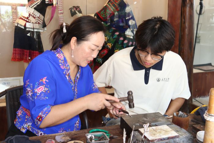 文化傳承是鑄牢中華民族共同體意識的重要紐帶,實踐隊在貴陽市龍井村的“一村百坊”非遺工坊集群中對此有了深刻體會。布依釀酒坊內,承載著布依族深厚待客文化的刺梨糯米酒飄香四溢。如今,融合生產、體驗、銷售功能的手工工坊已成為龍井村文旅融合的重要支點。壯族香坊內,沉檀龍麝的幽雅氛圍中,隊員們觀摩香粉配伍研磨,體驗香包制作,領悟蘊含其中的傳統養生智慧與天人合一理念。還有苗族銀坊,漢族陶坊,川青染坊……在這個有著上千年歷史的布依古寨里,各個民族的同胞齊聚一堂,不僅傳承融合各民族的傳統技藝,更點燃了鄉村經濟的活力。無論是釀酒坊對祖傳酒曲的世代守護,還是香坊師傅制香的專注匠心,都彰顯了文化根脈對鄉村振興的深層賦能。刺梨酒的醇香氤氳著民族魂魄,千年香道傳遞著中華智慧,龍井村的非遺工坊集群正是傳統文化活態傳承、激活鄉村內生動力、彰顯文化自信的生動樣本。