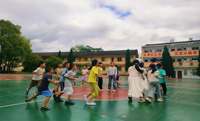 一.球場拼搏,釋放青春活力 校園操場上,支教團成員與孩子們的互動熱烈展開。籃球場上,雙方組隊競技,傳球、突破、投籃,盡管技術并不精湛,可團隊協作的默契在一次次配合中養成;足球區域,追逐間的歡聲笑語,讓孩子們懂得勇往直前的體育精神。看著孩子們在球場上大汗淋漓卻笑得燦爛,就知道他們在享受運動、收獲快樂,這也是志愿者們想傳遞的——用運動釋放活力,學會拼搏。球場時光,不僅是體育鍛煉,更是成長中關于勇氣與協作的生動課堂。