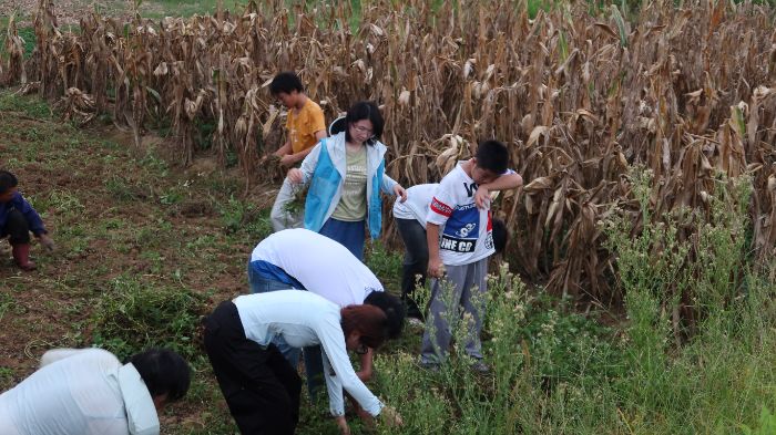 與預想的不同,一到田間,孩子們便積極主動的投入到拔花生、掰玉米的隊伍當中,他們仿佛也知道農民伯伯的不容易,原本調皮亂跑的孩子也靜了下來,一心一意的干著農活。