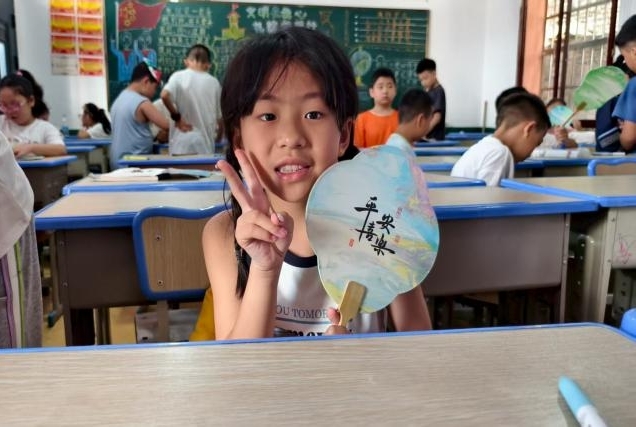 孩子們化身小小漆扇匠,驚奇地看著自己調(diào)配的色彩圖案被“拓”上扇面,個個面露喜色。結(jié)營儀式上,孩子們齊唱國歌與《歌唱祖國》并驕傲地展示自己親手完成的漆扇作品,整個過程令人動容。這抹色彩,與華為Logo上的中國紅,有著同樣的溫度——都是從堅守中生長出的希望。程遠昭老師當(dāng)年或許從未想到,她播撒下的教育種子,半個世紀后正通過外國語學(xué)院支教團的接力,在黔地開出更絢爛的花。