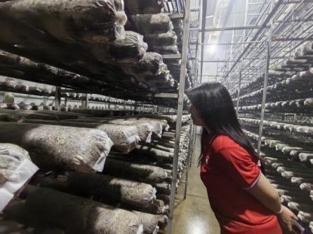 “銀耳的生長周期較短,但管理必須精細,稍有不慎就會影響品質。”公司負責人吳澤松向實踐團介紹。在恒溫恒濕的栽培車間里,一排排菌棒整齊排列,潔白的銀耳如花朵般綻放。團隊成員仔細觀察銀耳的生長狀態,并就種植技術、市場銷售等問題與企業人員交流。