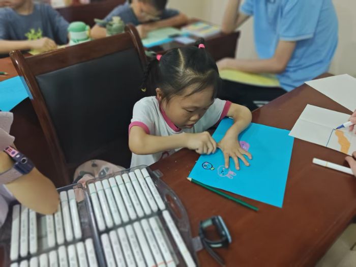 繪畫創(chuàng)作環(huán)節(jié),大學(xué)生們首先向小朋友們展示了一些優(yōu)秀的兒童繪畫作品,激發(fā)他們的創(chuàng)作靈感。隨后,小朋友們拿起畫筆,在畫紙上盡情發(fā)揮想象力。有的小朋友畫了在藍(lán)天中自由飛翔的小鳥,有的畫了和小伙伴們一起玩耍的場景,還有的畫了自己夢想中的城堡。一幅幅充滿童真的畫作躍然紙上,每一筆都飽含著孩子們對美好世界的向往。