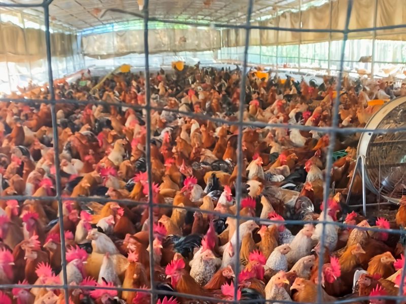 在這個養殖場里,密密麻麻的雞群被安置在一個相對封閉的空間內,這種集中化的養殖模式,方便對雞群進行統一的管理,比如投喂飼料、清理場地等操作都能更高效地開展,有助于提高養殖的效率。