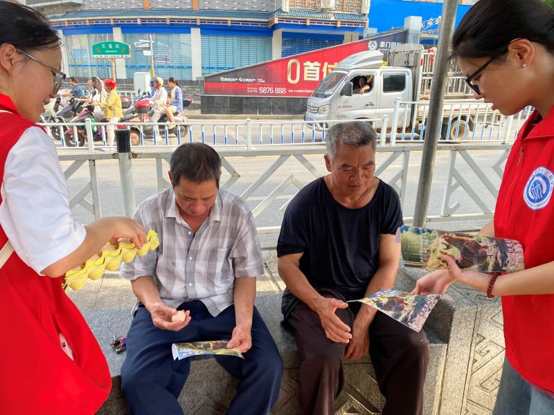 實地考察完成后,團隊并未局限于養殖基地,而是思考著怎樣讓七百弄雞這類鄉土特產被更廣泛知曉。經過精心籌備,隊員們選定縣城人流量較大的街道旁作為宣傳點,開展面向普通民眾的“科普小課堂”。隊員們一邊展示七百弄雞的精美圖片和生態養殖的精彩視頻,一邊講解其豐富的營養價值和背后蘊含的文化故事,“吃著天然谷物、呼吸清新空氣成長,雞肉鮮嫩多汁”的生動表述引得不少居民停下腳步聆聽。為了讓大家有更直觀的感受,隊員們還帶來了新鮮的七百弄雞蛋免費發放,邀請大家品嘗。很多群眾當場就詢問購買的途徑,現場氛圍十分熱烈。通過這種“大學生 + 消費者”的推廣模式,團隊探索出了“生態養殖 + 科普宣傳”的產業發展新路徑,讓更多人了解并信賴七百弄雞這一鄉土特色品牌。