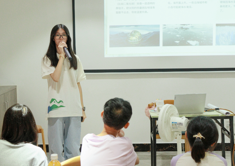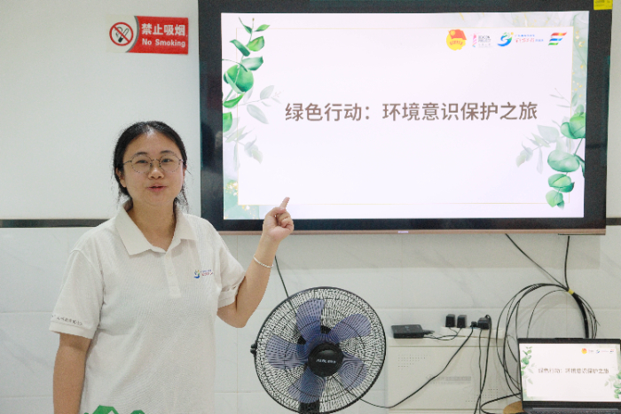 二、環(huán)保知識進(jìn)課堂,綠色理念潤心田 突擊隊隊員林玉琳和曾惠嬋開展了《綠色行動——環(huán)境意識保護(hù)之旅》主題宣講,通過有趣的游戲和生動的實物展示,讓青少年輕松掌握了垃圾分類的技巧。課堂上,青少年爭相回答問題,分享自己對環(huán)保的看法。這種互動式教學(xué)不僅加深了他們對知識的理解,更激發(fā)了他們對綠色生活的向往。