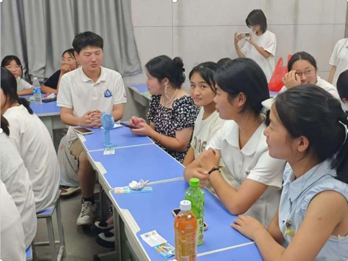 (3)展望未來,鼓勵砥礪前行:在“展未來、砥礪前行”部分,實踐隊員鼓勵學生們樹立遠大的目標,勇敢面對未來的挑戰。他們通過互動問答的方式,引導學生們思考自己的未來規劃,并給予了針對性的建議和指導。學生們積極參與討論,紛紛表達了自己對未來的憧憬和決心。整個團課過程中,實踐隊員們講得投入,學生們聽得認真,現場氣氛熱烈。