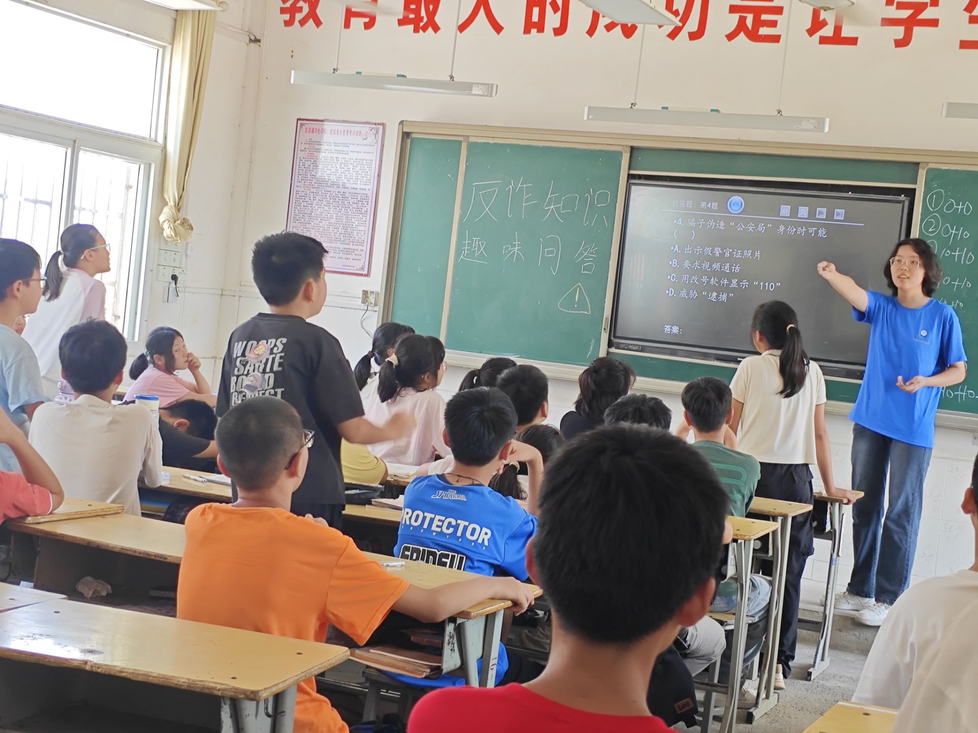 7月21日下午至25日,實踐團精心設計的暑期課程密集展開。語言賦能:主持禮儀課通過站姿訓練與“模擬主持”實戰,助力學生自信表達;演講稿寫作與朗誦課結合生活經歷,以聲情并茂破除溝通障礙。科普創新:物理課堂以“筷子彎折”魔術解析折射原理;水火箭升空實驗引發陣陣歡呼,少年追著問“能飛多高”間,科學的種子悄然萌發。安全防護:情景模擬防拐防溺、漫畫解讀《未成年人保護法》、反詐知識搶答賽,層層筑牢安全防護網。文化浸潤:24日校園攤位活動熱鬧非凡,“加字游戲”比拼文字功底,“飛花令”掀起詩詞熱潮,“你畫我猜”笑聲不斷,知識在游戲中傳遞。