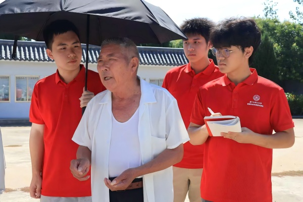 圖為實踐隊成員采訪胡特庸烈士陵園守陵人孟金開。康凌晨 供圖