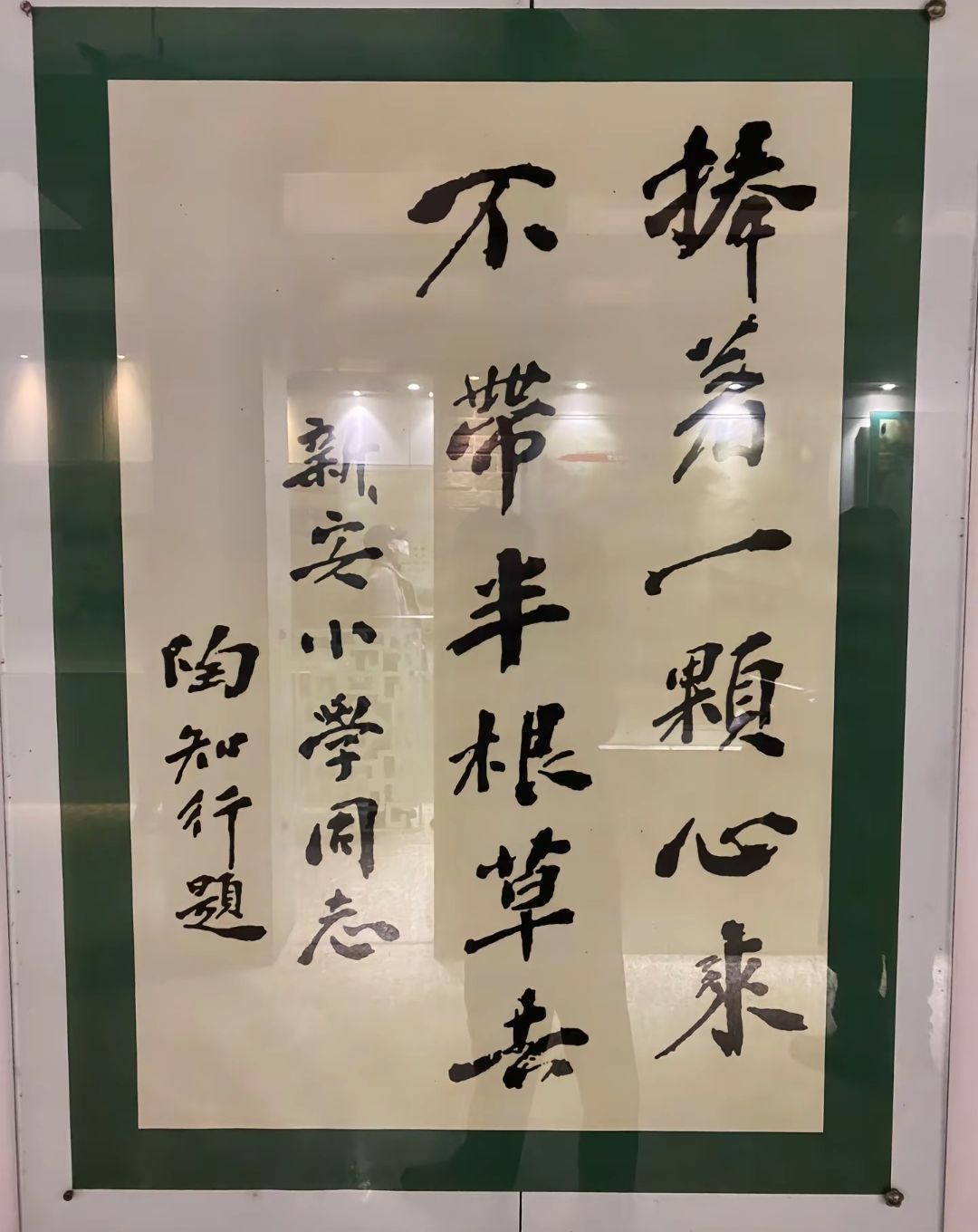沒有同行者的打擾,我得以在展館的角落慢慢消化所見所感。在“思想之光”展區,陶行知先生的名言被做成了燈箱,“千教萬教教人求真,千學萬學學做真人”的字樣在光影中格外醒目。我拿出筆記本,逐字抄寫這些話語,忽然意識到:先生所說的“真”,不只是知識的真實,更是做人的真誠、做事的認真。