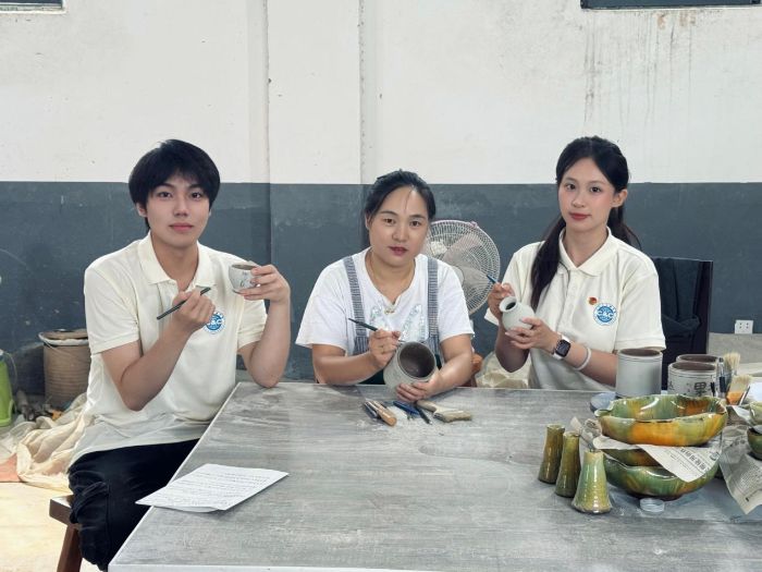 同時,實踐團先后對邢淑芹、盧莉華、張存世等彩陶傳承人進行了專訪。在采訪中,他們不僅了解到了彩陶的歷史淵源和文化內涵,還聽到了許多傳承人背后的感人故事。除了關注非遺傳承,團隊成員還深入調研了田營鎮彩陶產業與當地特色產業的融合情況、參觀界首存世博物館。在實踐活動的尾聲,實踐團成員們合影留念,記錄下這段難忘的經歷。他們不僅記錄了彩陶技藝的傳承故事,還計劃結合專業所長為當地設計彩陶文創推廣方案,用青春力量助力非遺“活起來”。