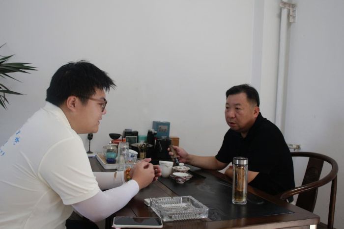 圖為華鑫集團孫總與實踐團成員交談。王亞辰 攝