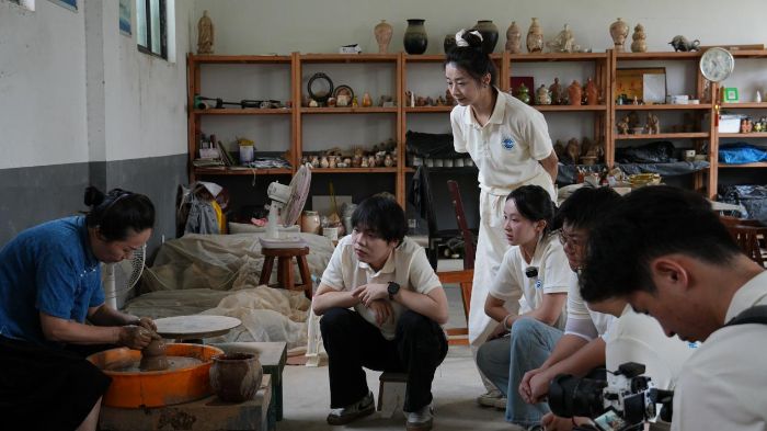 圖為實踐團觀看并拍攝邢淑芹泥塑過程。張子欣 攝