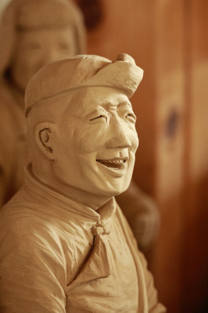 圖為邢會為剛剛成胚的彩陶雕花。張子欣 攝